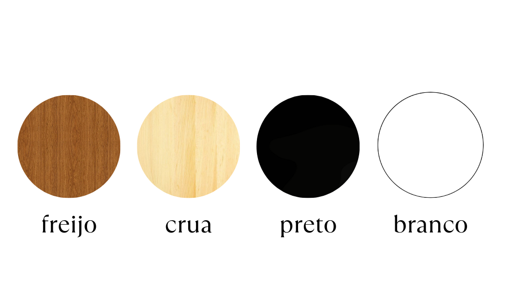 Material da moldura: Produzida com madeira maciça 100% proveniente de reflorestamento, garantindo um produto bonito, sustentável e durável. Protegida com película de PET reciclado (preta e branca) ou melamínica (freijó e crua)